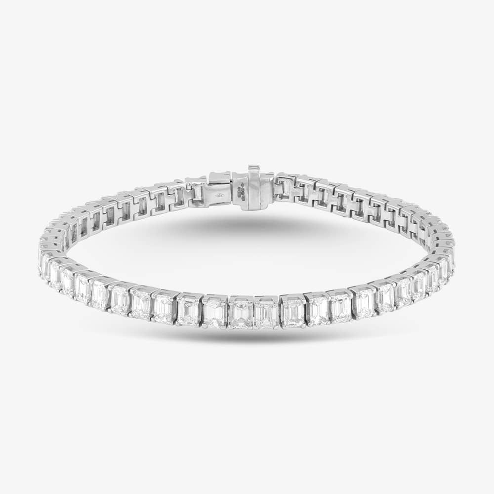 A timeless masterpiece of jewellery craftsmanship, this exquisite tennis bracelet is crafted with the finest platinum and adorned with 51 emerald-cut diamonds, with a total carat weight of 12.22ct. The classic design and exceptional quality of the diamonds make this bracelet a timeless piece of jewellery.