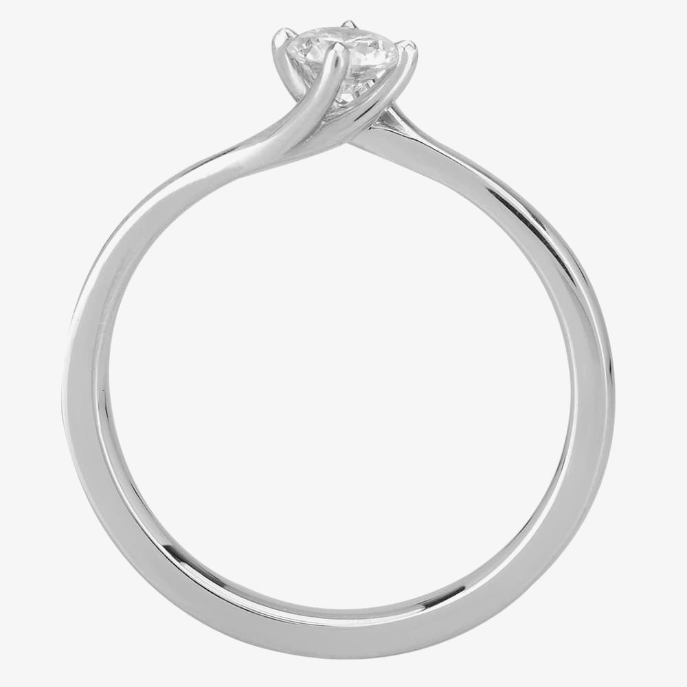 The perfect engagement ring for anyone who likes classic sparkle with unique design, this ring features a certificated 0.25ct round brilliant cut diamond hand set in a platinum four-claw twisted mount.
