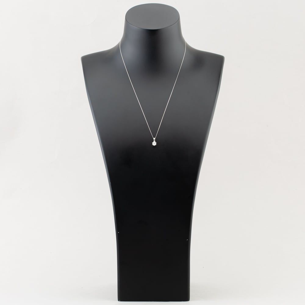 A platinum silver pendant necklace featuring a brilliant-cut diamond weighing 0.50ct, secured in a classic six-claw setting. Suspended on a timeless belcher chain, the diamond is certified with a colour grade of D and a clarity grade of SI1, ensuring exceptional quality and brilliance.
