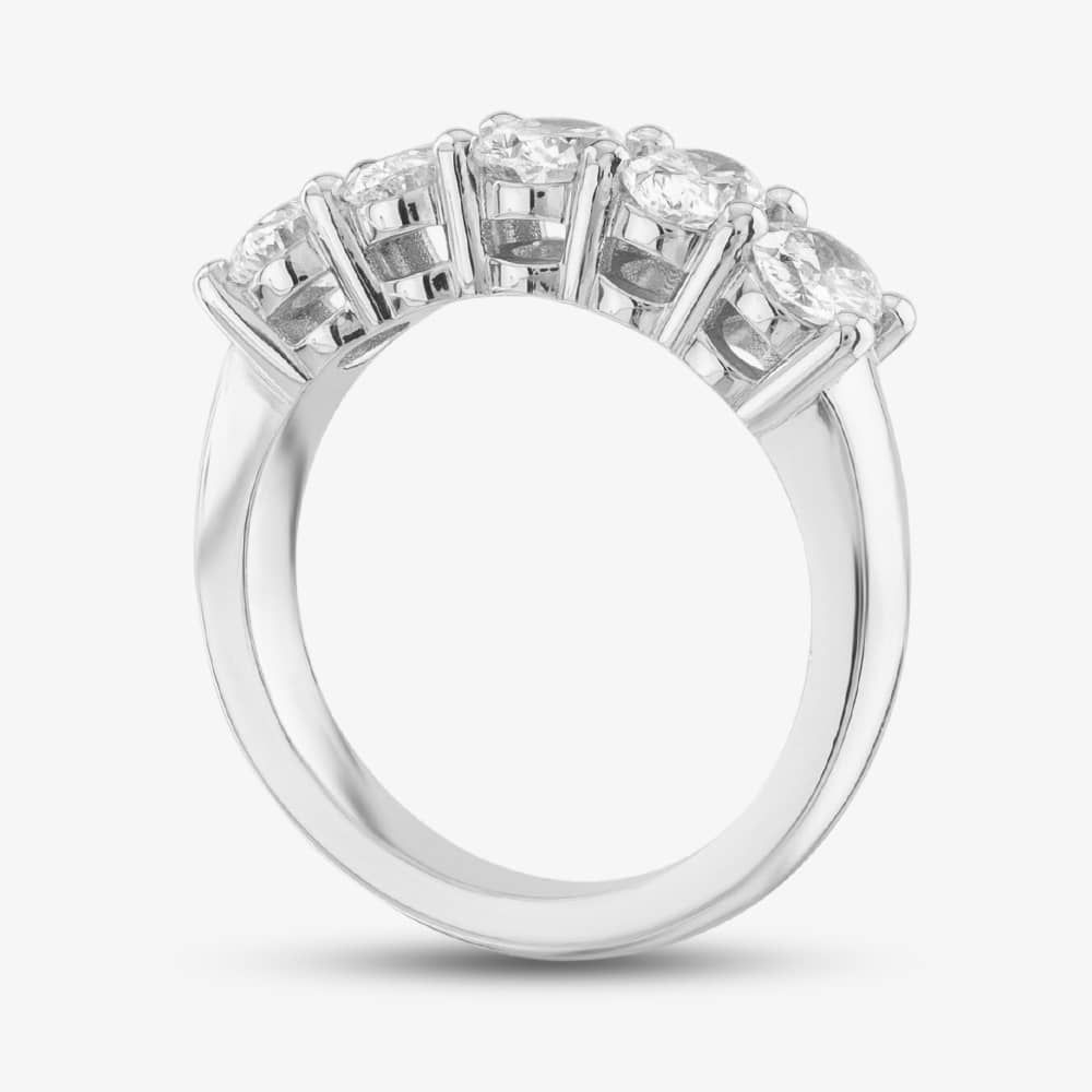 This exquisite platinum five-stone ring is a true celebration of brilliance and refinement. It features five dazzling diamonds with a total weight of 1.63ct, expertly set to maximise their sparkle and presence. Each diamond showcases exceptional quality, with a variety of clarities ranging from VVS1 to SI1 and an impressive colour grade of D to F, ensuring a near-colourless, radiant display. The sleek platinum band provides a durable and sophisticated foundation, perfectly complementing the brilliance of the diamonds. This timeless design is an ideal choice for marking a special occasion or adding enduring elegance to your collection.