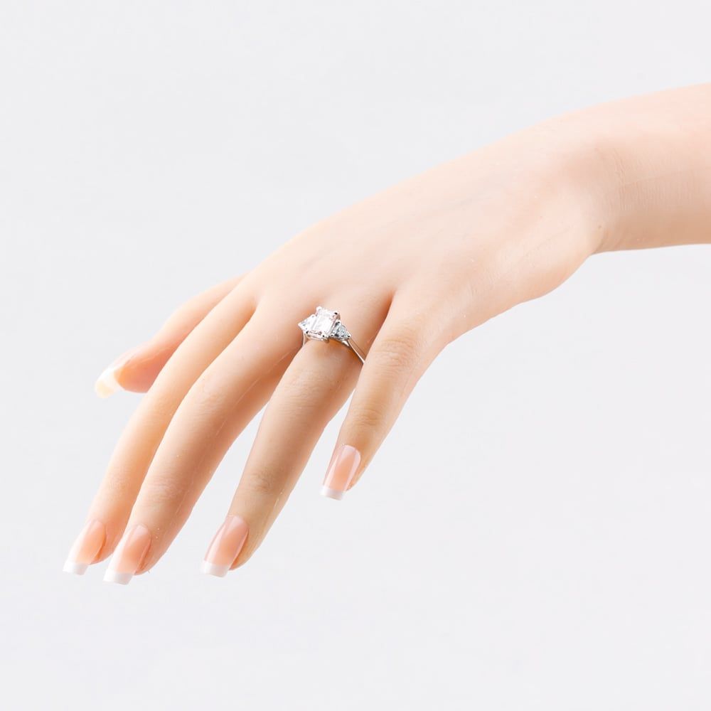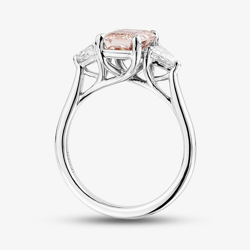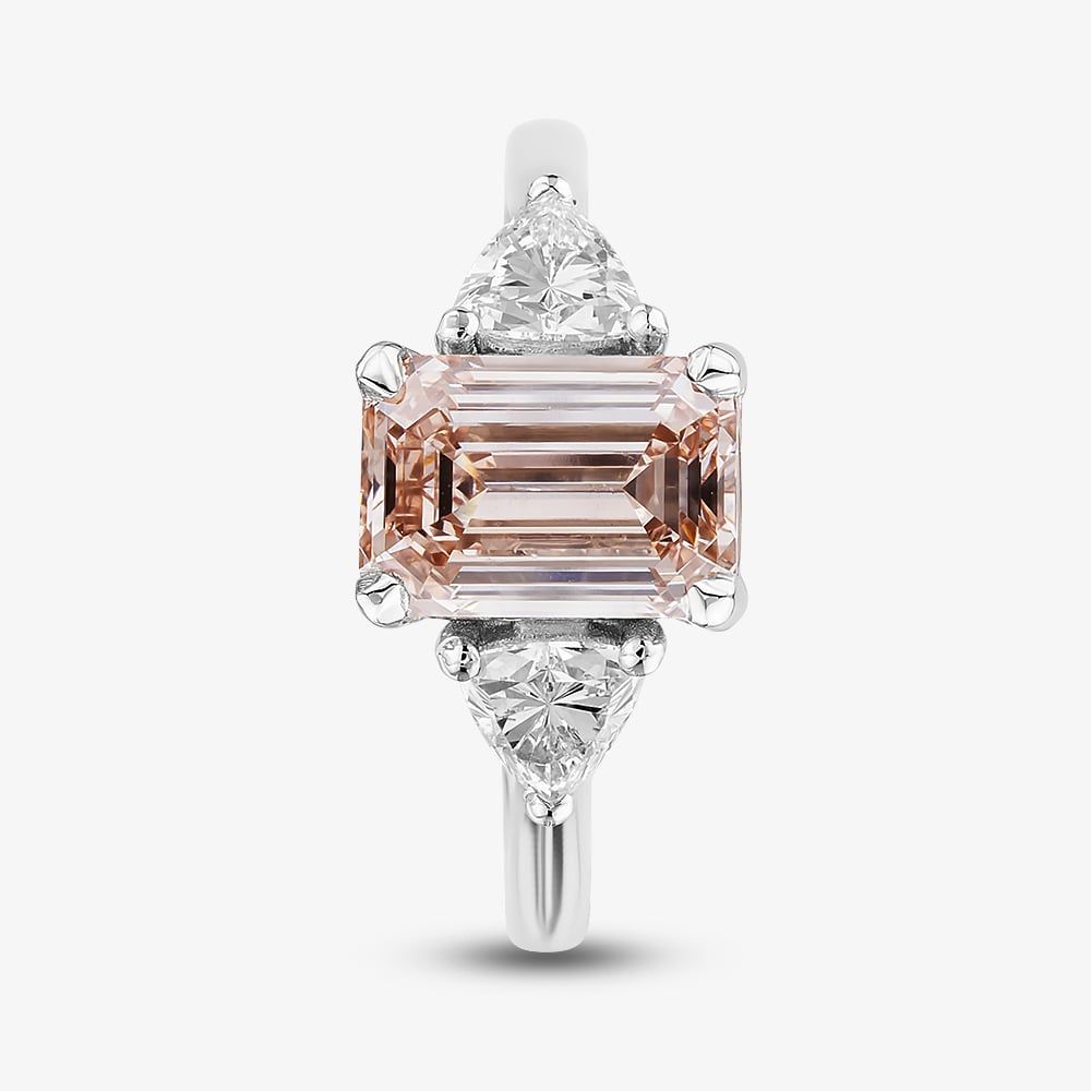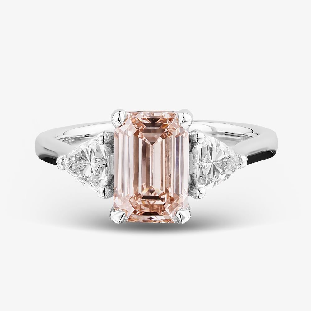 Celebrate elegance and colour with this Fancy Intense Pink Emerald Cut Lab-Grown Diamond Trilogy Ring. The striking 2.12ct pink centre diamond is flanked by two brilliant triangle-cut white lab-grown diamonds, totalling 0.60ct, creating a captivating play of light and contrast. Crafted in platinum, each ethically sourced, certified diamond reflects exceptional craftsmanship and timeless sophistication. A statement of refined luxury and enduring beauty, this ring is perfect for commemorating special moments or adding a bold, elegant touch to any collection.