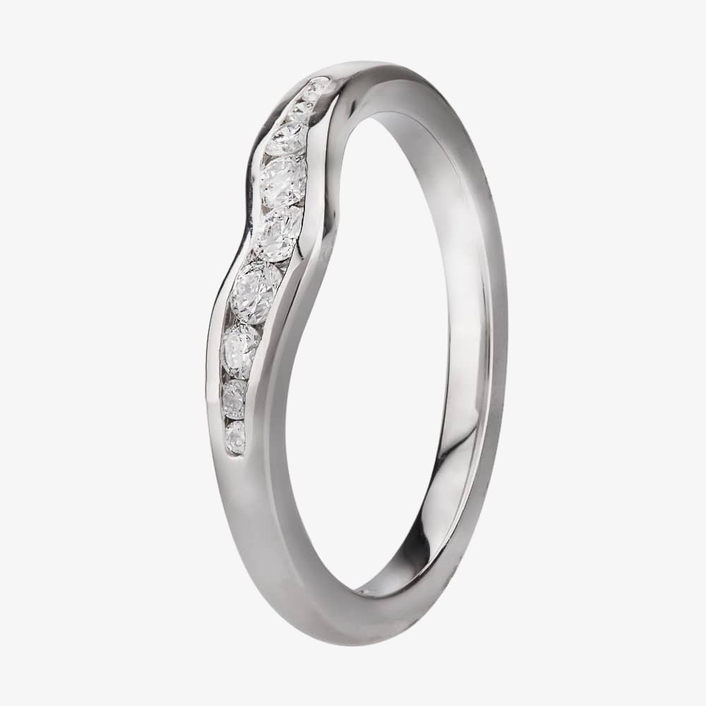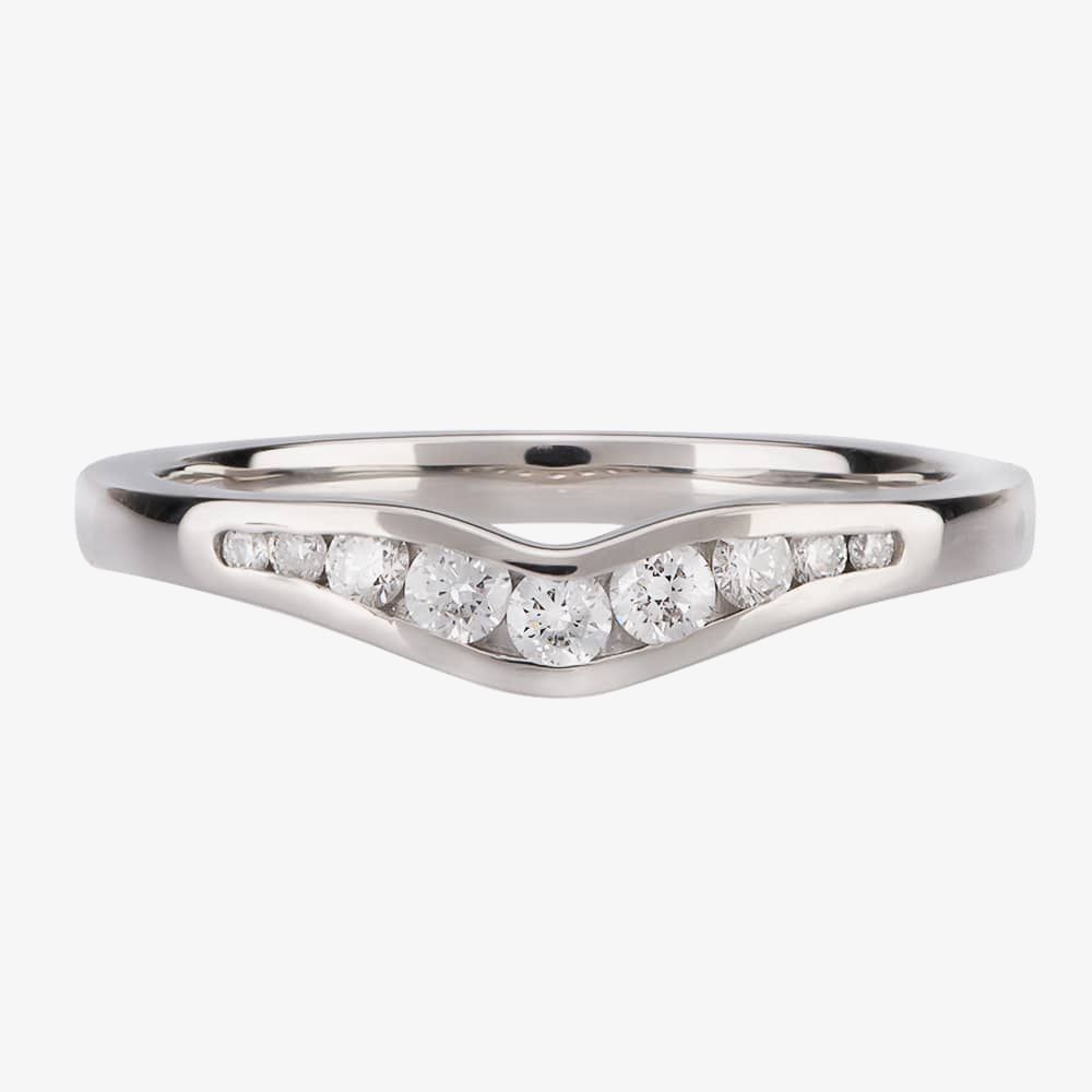 Give your ring finger a special sparkle with this stunning diamond set platinum band ring. The luxurious platinum band features 9 graduated diamonds with a dipped centre and a total weight of 0.22ct. The dipped centre makes this the ideal wedding band for pairing with your engagement ring.