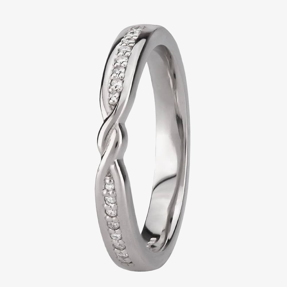 Complete your bridal set with this stunning platinum band ring and give your ring finger an extra special sparkle. Expertly crafted from luxurious platinum metal, featuring elegant diamond detailing and a stylish double crossover centre.