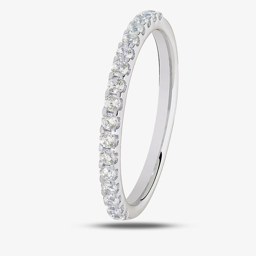 Perfect for adding some extra sparkle to your bridal ring set, the Platinum Diamond Half-Eternity Wedding Ring RMW-170-050-033-PT is a must-have. Made from platinum, this half-eternity ring features rows of stunning round brilliant-cut diamonds in four-claw settings.