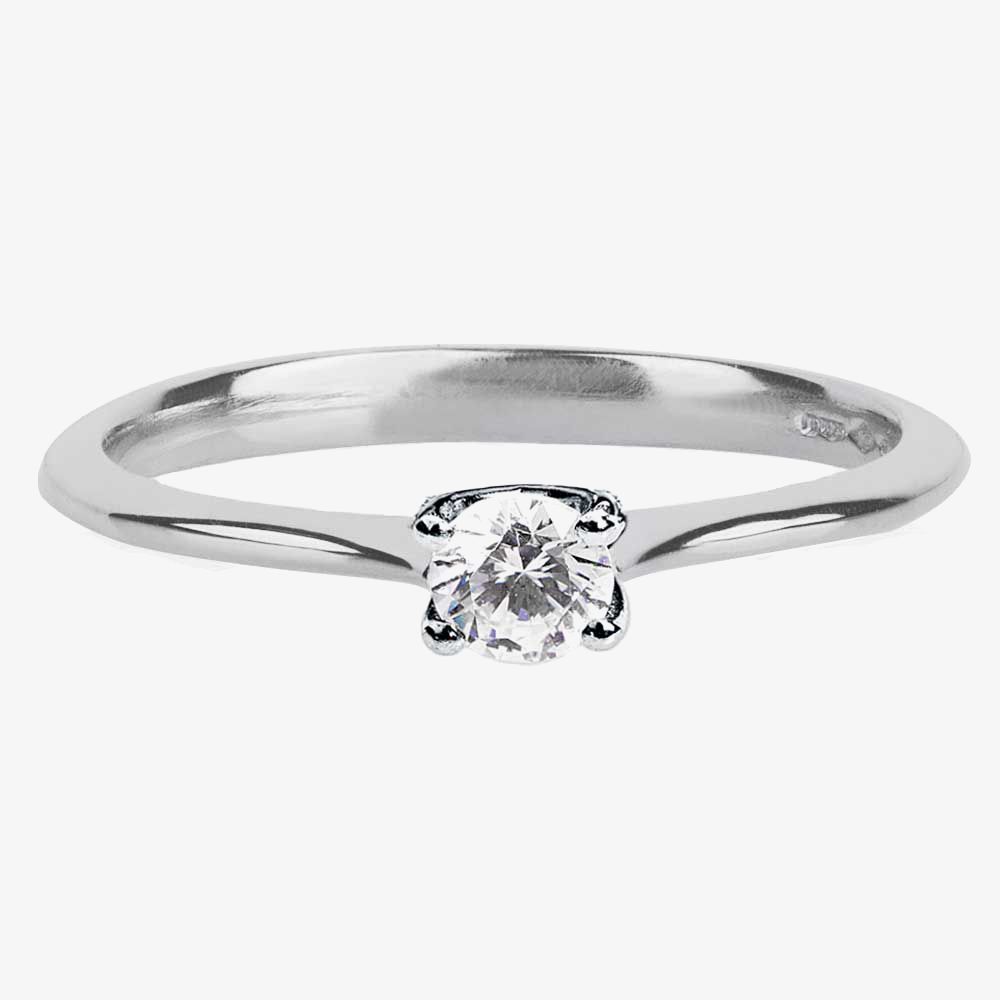 This round brilliant diamond ring is crafted from resilient and visually pleasing platinum, formed into a court profile band for comfort and with a raised mount below the diamond to allow more light to penetrate.