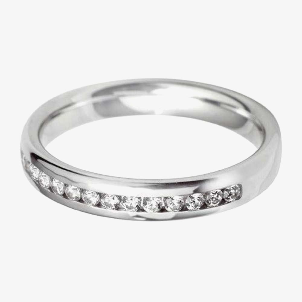 As the top of the line metal for wedding bands, platinum is at the forefront of beauty and quality, this elegant 2.5mm diamond set wedding band is no exception. The bright and durable metal accentuates a channel of dazzling diamonds with a stylish court shaped finish. Featuring brilliant cut diamonds with a total weight of 0.22ct-0.29ct, colour H and clarity SI.