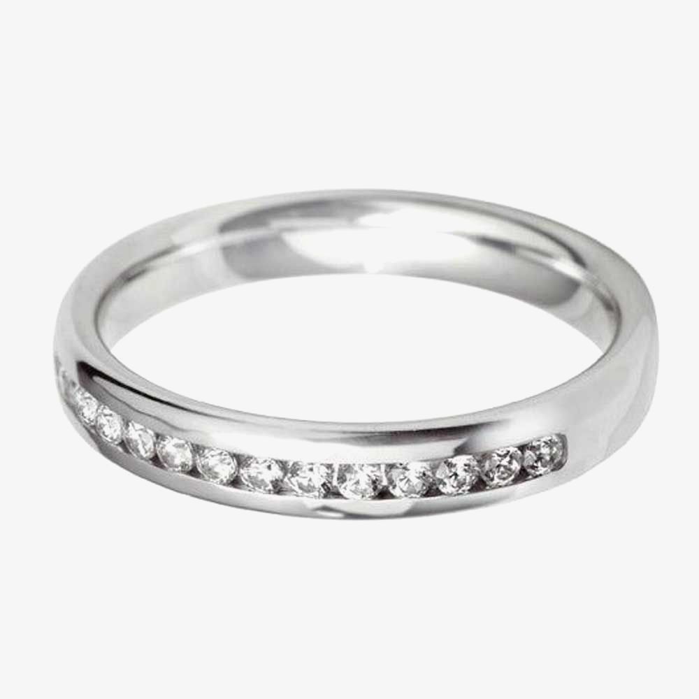 As the top of the line metal for wedding bands, platinum is at the forefront of beauty and quality, this elegant 3.5mm diamond set wedding band is no exception. The bright and durable metal accentuates a channel of dazzling diamonds with a stylish court shaped finish. Featuring princess cut diamonds with a total weight of 0.35ct-0.50ct, colour H and clarity SI.