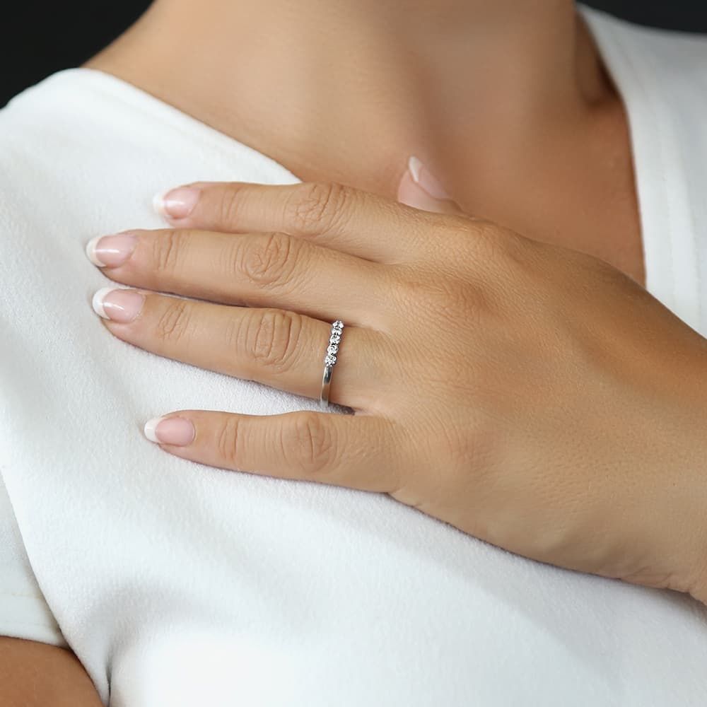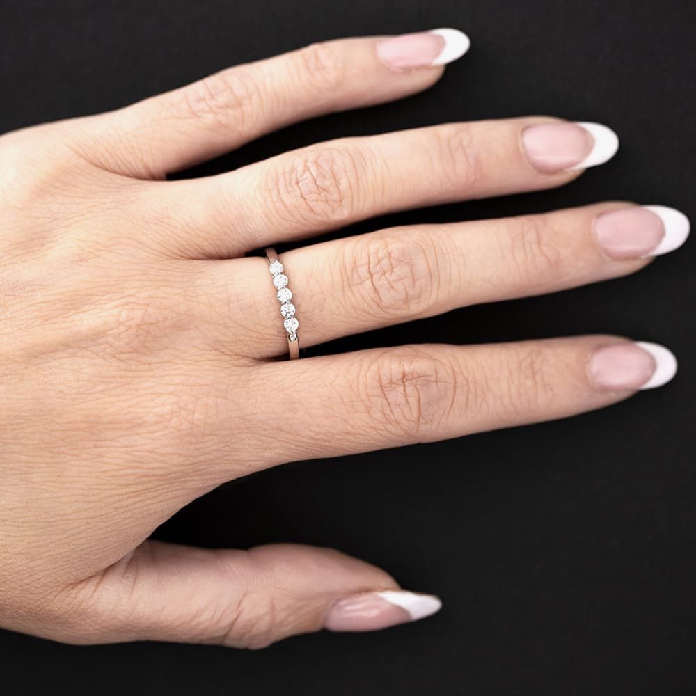 A stunning offering as an engagement ring, this ring features five certificated round brilliant-cut diamonds hand set in a platinum basket mount bridge, offering 0.30ct of diamond sparkle.