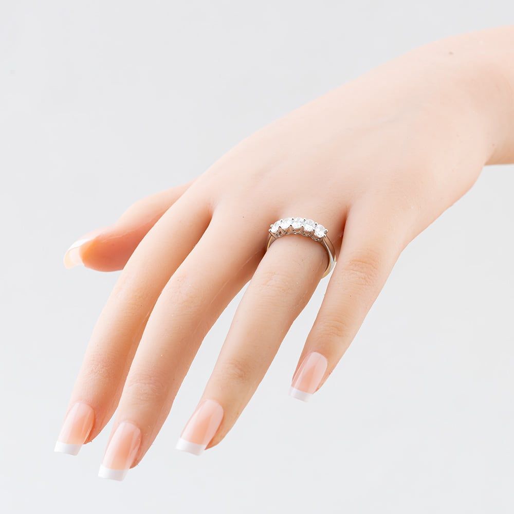 A stunning platinum silver five-stone ring featuring 1.03 carats of brilliant-cut diamonds, expertly crafted to showcase timeless elegance and sparkle.
