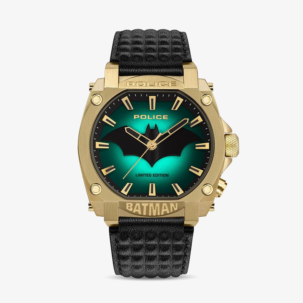 https://www.thbaker.co.uk/police-mens-limited-edition-gold-forever-batman-watch-pewgd0022602173304Police Mens Limited Edition Gold Forever Batman Watch PEWGD0022602https://www.thbaker.co.uk/media/catalog/product/2/3/23-37-25147242_police_01.jpg225225GBPOutOfStock/Watches/Watches/Mens Watches/Watches/Quartz Watches/Watches/Strap Watches/Leather Strap Watches/Watches/Limited Edition Watches/Watches/Designer Watches3626362746794677479843181236266761Batman Blk Lthr Sw Gp Case Bat Dl Step into the shadows with the limited edition Forever Batman Watch, a bold tribute to the Dark Knight. Featuring a stealthy design with the iconic Bat symbol, this timepiece is built for day and night missions, enhanced by a tactical backlight feature. The 45x51.5mm IP gold case proudly displays both the Police and Batman emblems, while the black and semi-transparent charcoal dial keeps its true power hidden until activated. Finished with a textured black leather strap for both comfort and edge, this watch is as functional as it is fearless. Forever Batman, a symbol of hope, even in the darkest of times. Includes a collectible box and certificate of authenticity.