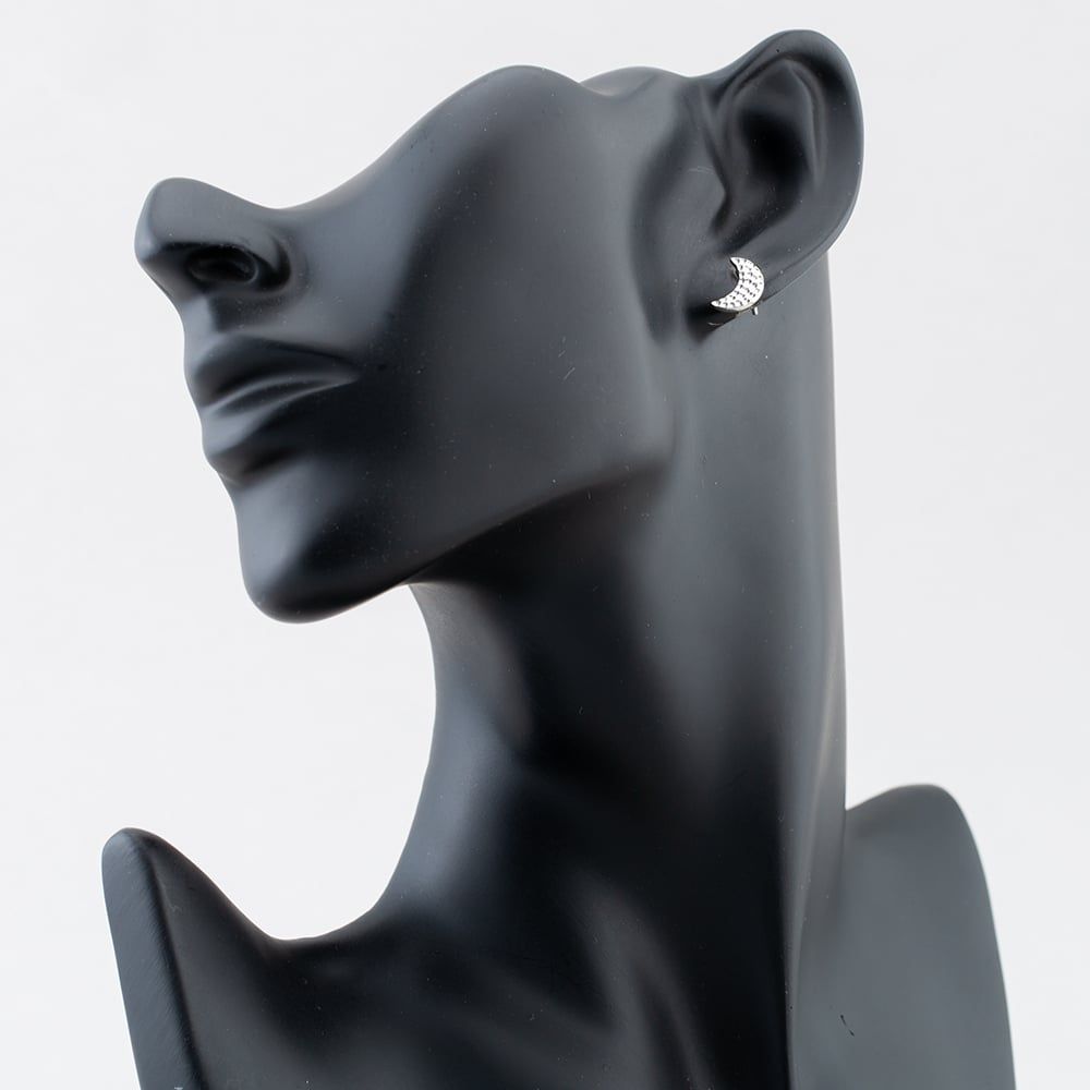 Elegant sterling silver stud earrings featuring a textured moon design. These subtle yet striking earrings add a touch of celestial charm to any look, perfect for everyday wear or special occasions.