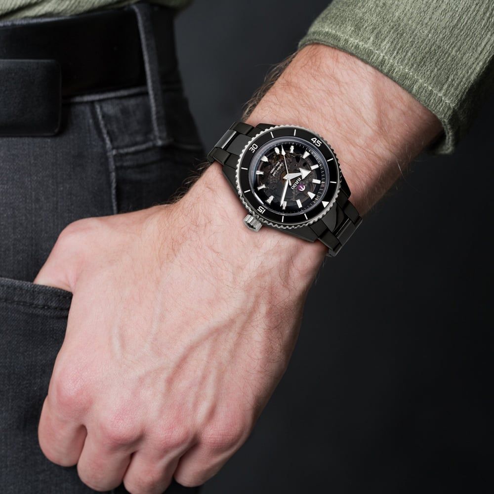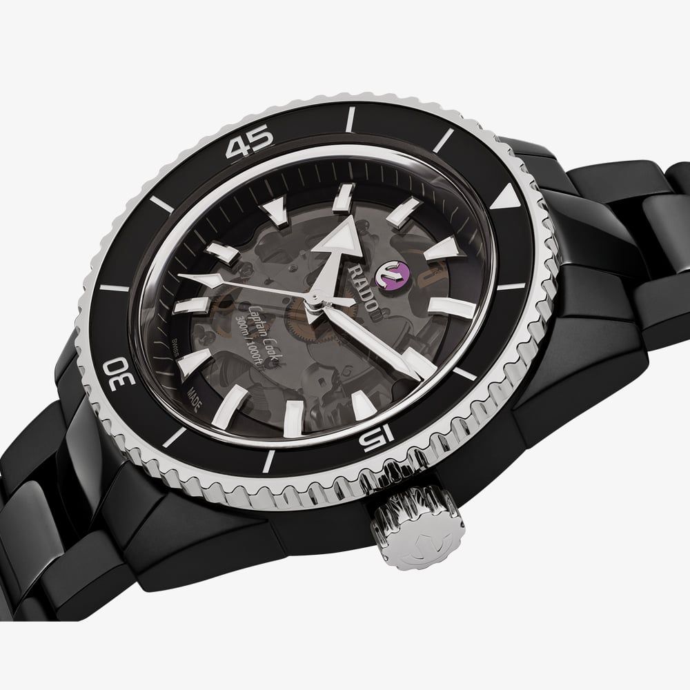 The Captain Cook High-Tech Ceramic watch is a result of many years of development and research into the history and tradition of Rado Captain Cook. This innovative watch has been created in scratch-resistant and hypoallergenic High-Tech Ceramic and features an eye-catching skeleton dial. The movement has been equipped with an anti-magnetic Nivachron™ hairspring that has been fully tested.
