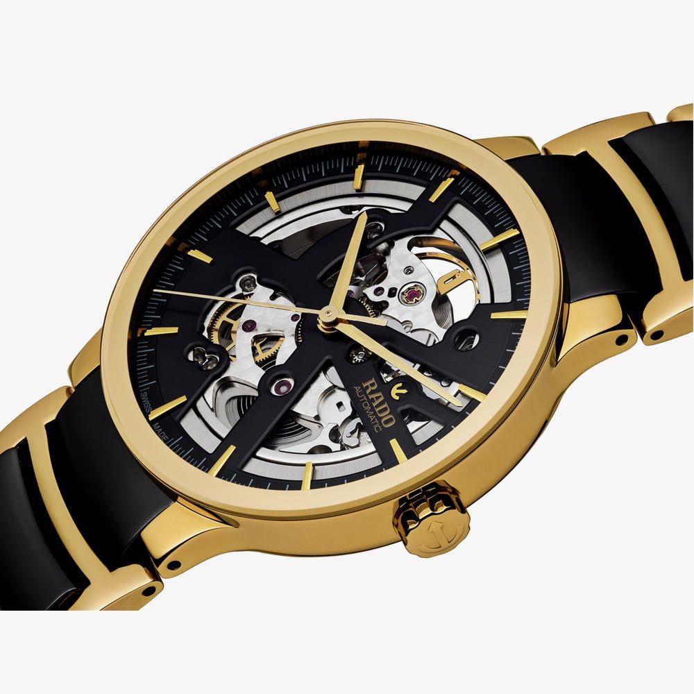 The reliable Centrix watch is the perfect day-to-evening watch with its interesting colour combinations and scratch-resistant shine, this model is designed to last a lifetime. Featuring an eye-catching skeleton dial giving a glimpse of the quality Swiss Automatic movement inside.