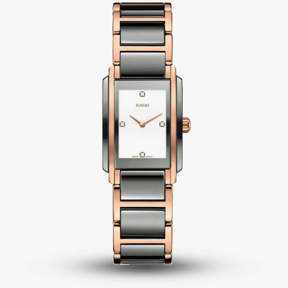 The iconic Rado Integral has been modernised to attract new enthusiasts. This enduring watch features a gleaming white dial with alluring diamonds at the 3, 6, 9and 12’oclock position.