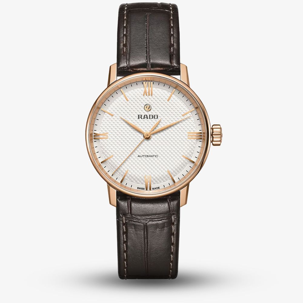 The Rado Classic automatic takes the design of a traditional classic watch, and modernises it with a sapphire crystal glass on the front and the back of the watch. The case is made from a rose gold plated stainless steel to give it that beautiful finish.