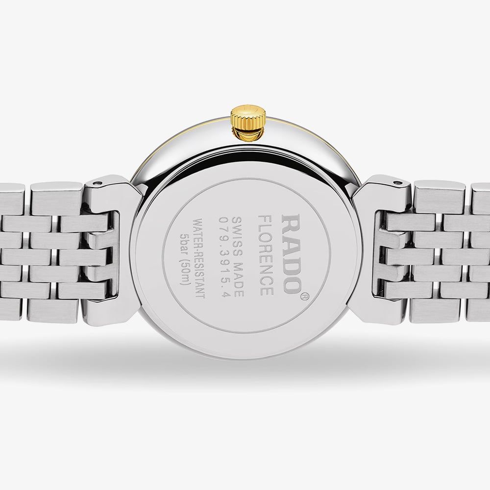 https://www.thbaker.co.uk/rado-ladies-florence-30mm-white-bracelet-watch-r48913023177626Rado Ladies Florence 30mm White Bracelet Watch R48913023https://www.thbaker.co.uk/media/catalog/product/2/4/24-72-25155048_rado_01.jpg950950GBPInStock/Watches/Swiss Watches/Free Gift Card - When you spend £500+/Watches/Luxury Watches/Ladies Luxury Watches/£50 Gift Card (£500-£999.99)/Watches/Watches/Ladies Watches/Watches/Luxury Watches/Watches/Quartz Watches/Watches/Bracelet Watches/Brands A-Z/Rado Watches/Rado Ladies/Brands A-Z/Rado Watches/Rado Florence/Brands A-Z/Rado Watches/Admin/Free Gift With Purchase Products46927234735776353626426964434679467649176657468076331236266443479246806413Florence Two-Tone Bw 30mm Wht Dl Elegance is found in the finer details of the Rado Florence Classic, a timepiece that mirrors the graceful lines of the historic city of Florence. This 30mm model is perfectly proportioned for a more delicate wrist, offering a light and graceful feel without losing the presence of a luxury Swiss watch. The shimmering white dial is encased in polished stainless steel and protected by an innovative edge to edge metallised sapphire crystal, which creates a smooth, continuous surface that is delightful to touch.