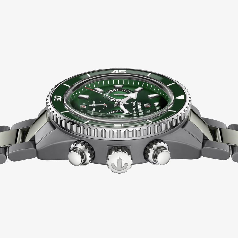 Crafted with precision, this watch features a robust stainless steel case that ensures durability and style. Its striking green dial, adorned with luminous hands and markers, offers excellent readability in any lighting condition. Powered by an automatic movement, this watch not only maintains precise timekeeping but also showcases a sophisticated chronograph function, perfect for measuring elapsed time with precision. The sapphire crystal protects the dial from scratches, ensuring long-lasting clarity and brilliance.
