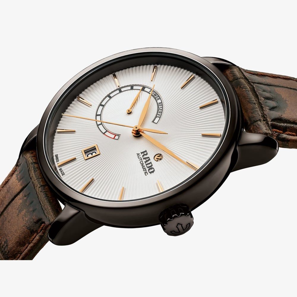 https://www.thbaker.co.uk/rado-mens-diamaster-automatic-power-reserve-brown-leather-strap-watch-r1414002666188Rado Mens DiaMaster Automatic Power Reserve Brown Leather Strap Watch R14140026https://www.thbaker.co.uk/media/catalog/product/2/4/24-71-052_grey.jpg14952200GBPOutOfStockRado Diamaster Ceramic Automatic Watch R14140026 The Rado DiaMaster Power Reserve really does have it all, featuring a white sunburst dial with gold-tone hands, hour markers and a date display. This watch also comes with a helpful power reserve indicator on the dial to indicate how much power is left before the next winding is required.