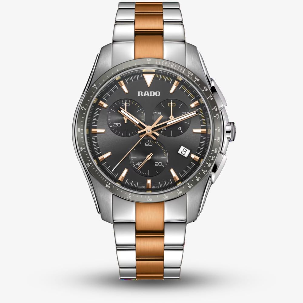 The Rado Hyperchrome Chronograph is designed to be sleek and sporty. The watch looks just as good in a suit as it does with casual wear.