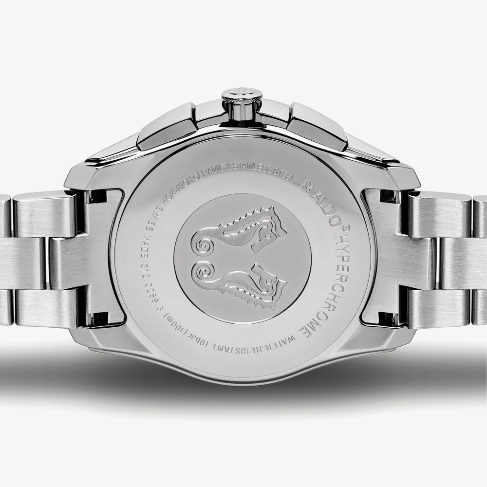 Rado presents this stylishly designed and expertly crafted piece from the HyperChrome collection. The watch boasts a blue sunray backdrop that matches the bezel, decorated with pointed silver tone batons and a trio of luminescent dial hands. Alongside hours, minutes and seconds, the dial also possesses a handy date display located to the right of the dial hands, offering an excellent everyday feature.