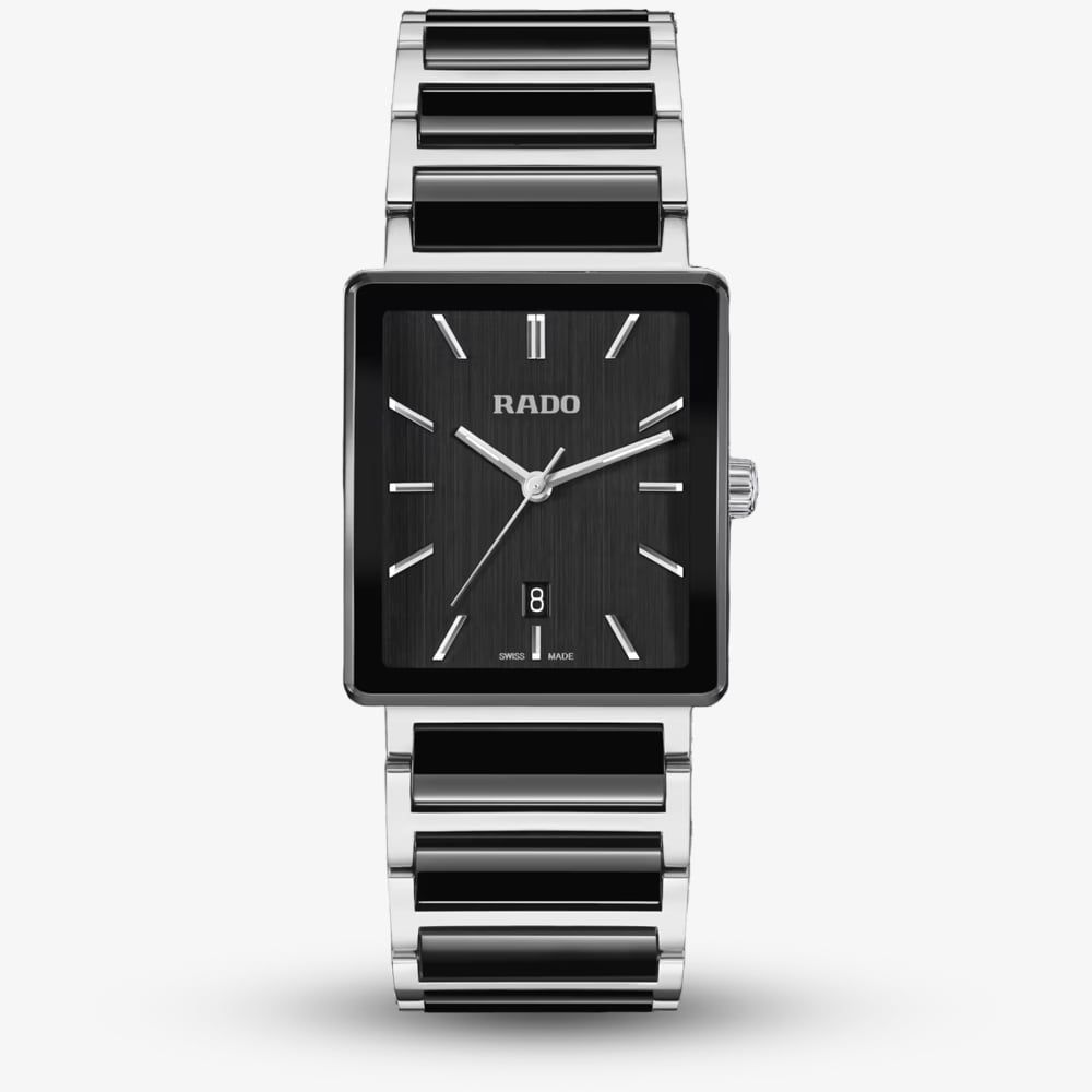 Featuring a striking black and silver colour combination, this watch is designed with a sleek square dial that delivers a contemporary, minimalist look. The bracelet is crafted from premium high-quality stainless steel with high-tech ceramic links for a premium finish. This watch offers exceptional durability while maintaining a lightweight, comfortable feel. Its polished finish and clean dial accents provide effortless style suitable for both formal occasions and everyday wear.