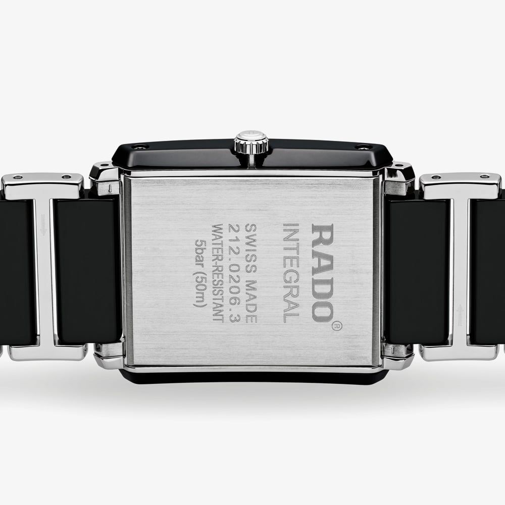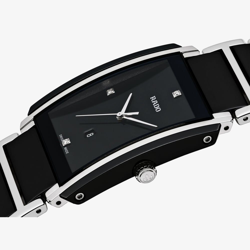 Demonstrating Rado's impeccable craftsmanship, is this contemporary Integral wristwatch has been crafted with a blend of stainless-steel and high-tech ceramic. Its lightweight design makes for a comfortable fit whilst uncompromising style and sophistication. Its minimalist black dial boasts a date window with four diamond set hour markers.
