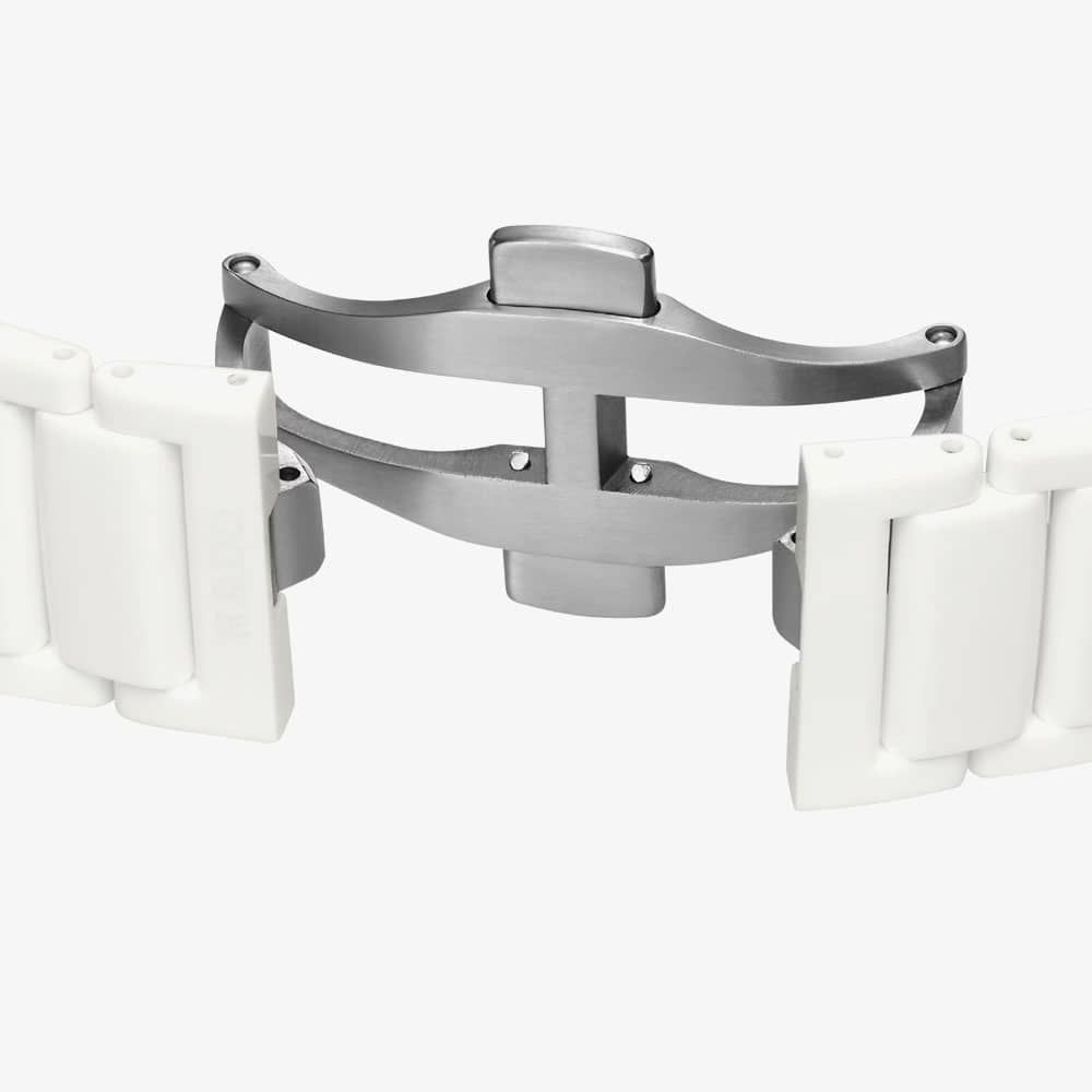 • Presented on a white ceramic bracelet with push button deployment clasp.