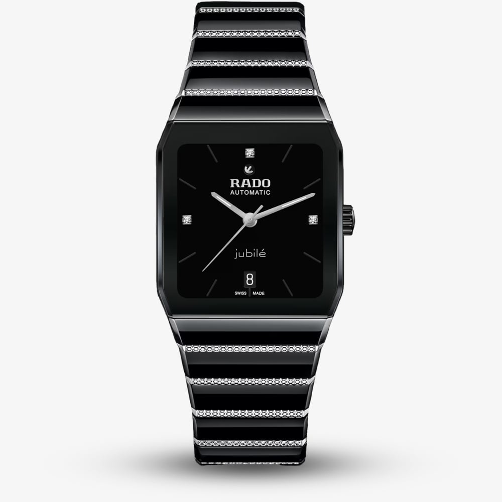 A captivating timepiece that seamlessly merges Rado's iconic design with the allure of diamonds and the precision of an automatic movement. This unisex watch is a statement of sophisticated luxury, designed for individuals who appreciate cutting-edge materials, meticulous craftsmanship, and a touch of elegance. The bracelet is adorned with several diamonds, only adding to the luxurious appeal of this timepiece.