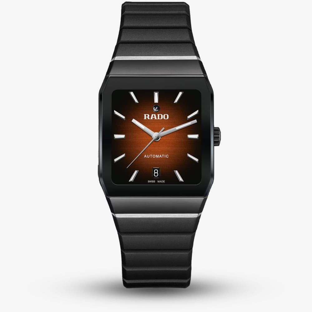 A striking timepiece that effortlessly blends Rado's signature contemporary design with a vibrant orange dial and the reliable performance of an automatic movement. This unisex watch is a bold and stylish choice for those who appreciate modern aesthetics with a strong pop of colour and exceptional craftsmanship.