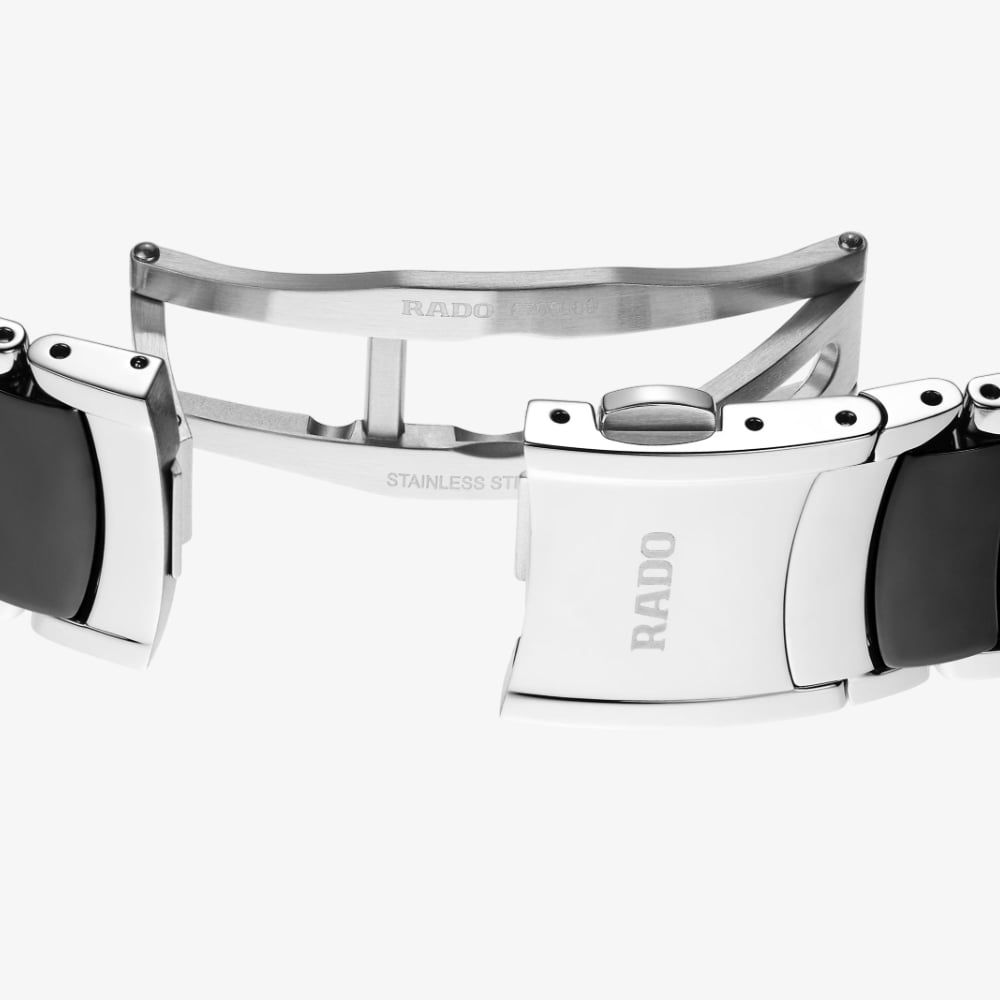 A sophisticated timepiece that blends luxury with modern elegance. Featuring a sleek black stainless steel case, this watch is designed for both durability and style. The black dial is adorned with diamond hour markers, adding a touch of brilliance to its refined appearance. With scratch-resistant sapphire crystal, it ensures long-lasting clarity and protection. The Swiss quartz movement guarantees precise timekeeping, while the stainless steel bracelet with black high-tech ceramic middle links provides a comfortable and lightweight fit. Perfect for any occasion, this watch is a timeless accessory that embodies sophistication and craftsmanship.