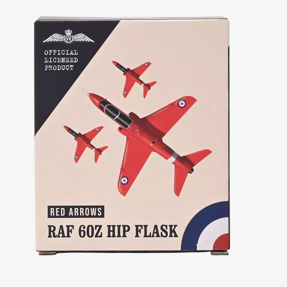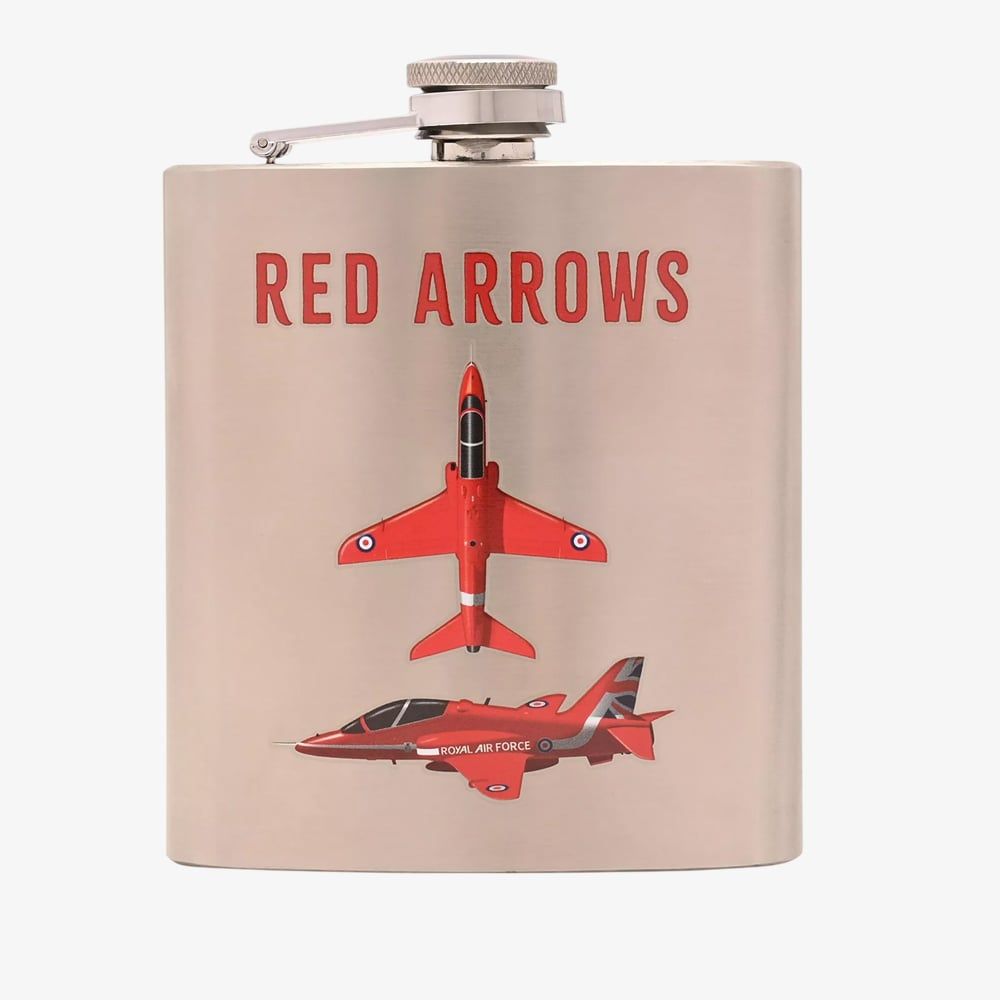 Celebrate the precision and heritage of the Red Arrows with this stylish hip flask. This item features official Royal Air Force Red Arrows branding, making it a distinctive accessory and a great collectible for fans of the iconic aerobatic display team.