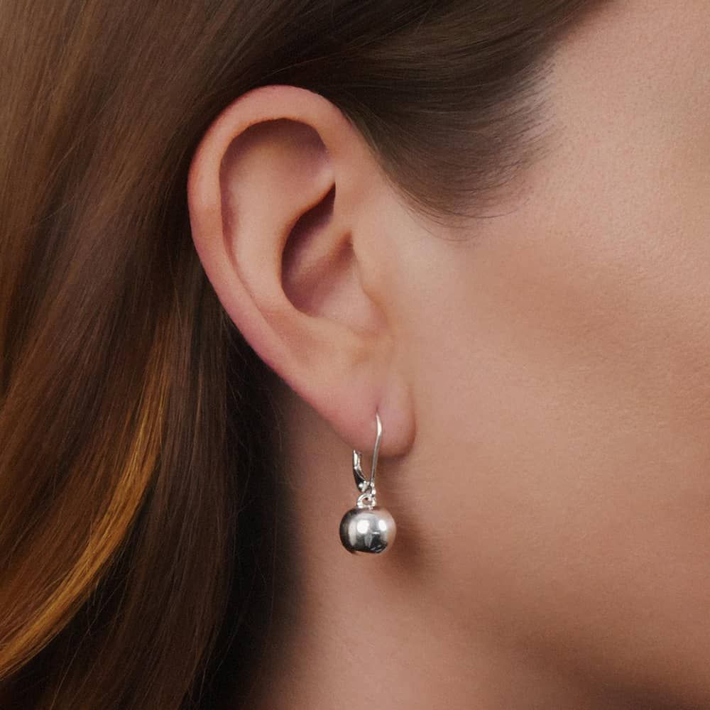 A pair of Lauren Ralph Lauren dropper hoop earrings are delicately crafted and made from sterling silver and feature a round silver bead pendant. The ball measure 25mm in size.
