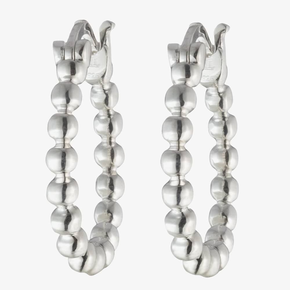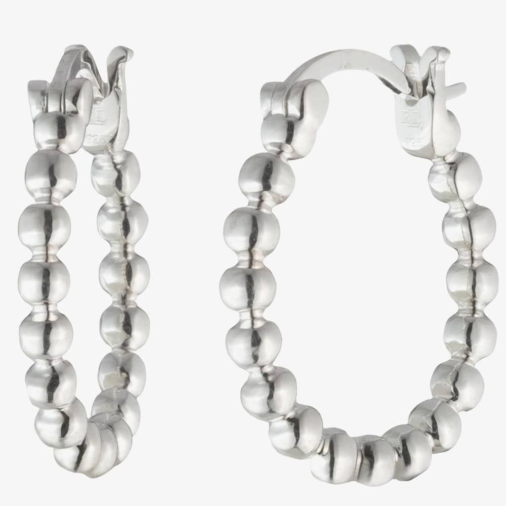 A pair of Lauren Ralph Lauren beaded hoop earrings are delicately crafted from sterling silver. Each hoop measures 16mm in size and closes with a latched clasp.