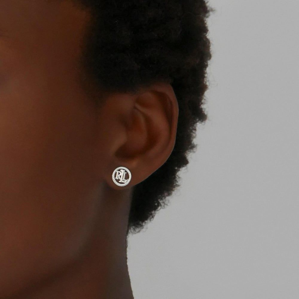 The Lauren Ralph Lauren Logo earrings have been created in sterling silver & feature an open rope logo circle disc design & are completed on a post & butterfly back fastening. Earring Size Approximately 9mm.