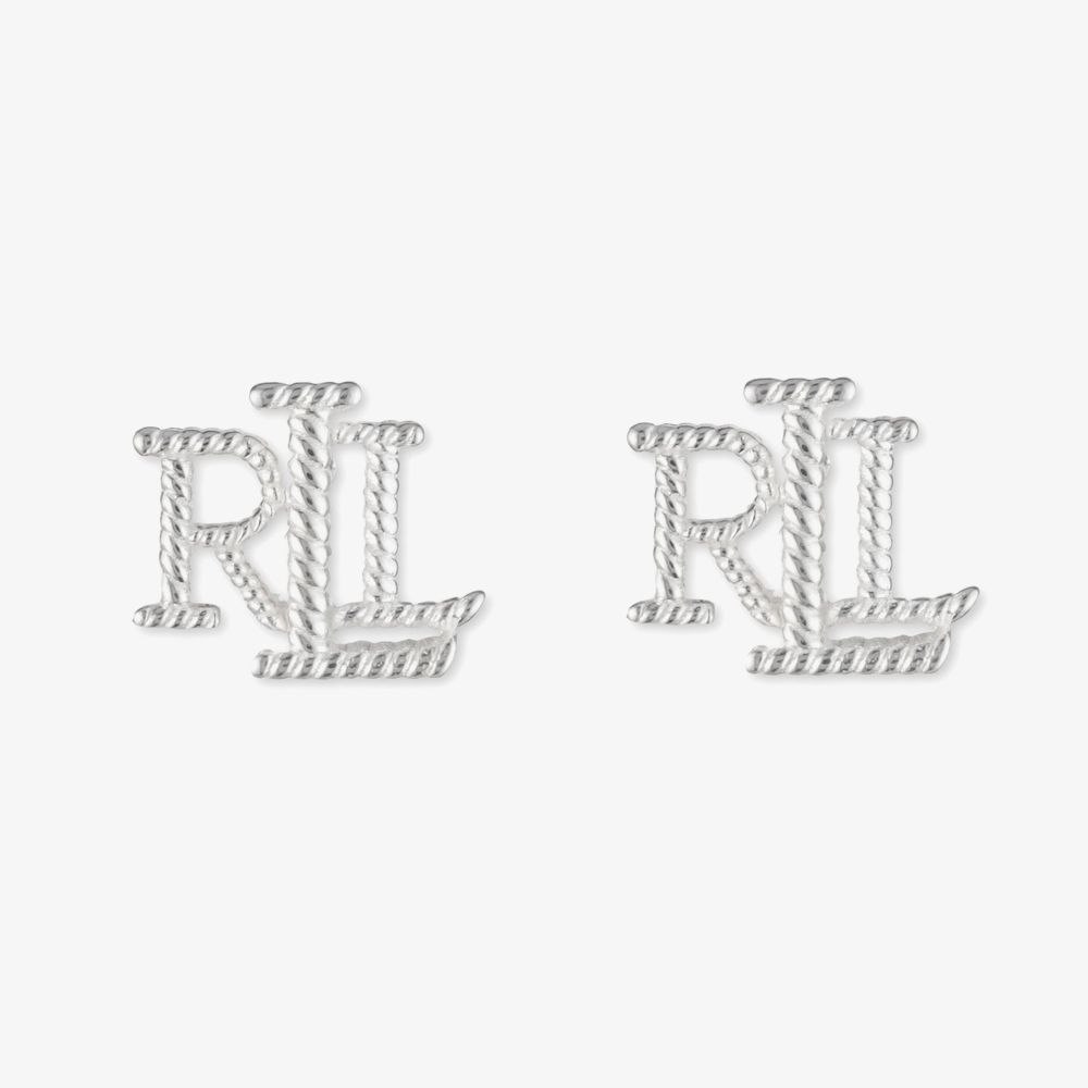 A pair of Lauren Ralph Lauren logo stud earrings are delicately crafted from sterling silver and features the RLL logo in a rope design. Each stud measure 10mm in size.