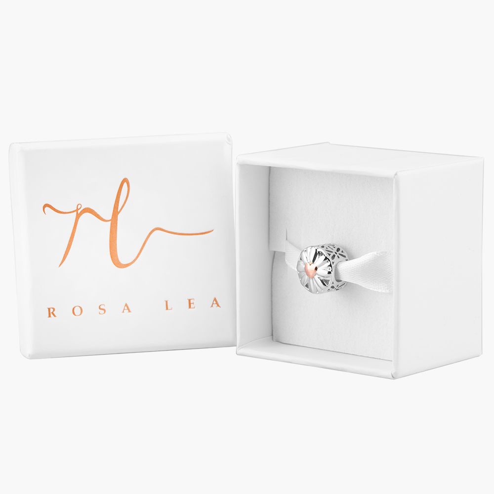 Rosa Lea Best Friend Heart Charm AM-2THB032304 is crafted from sterling silver. This delicate heart charm features the word “Best Friends” in the centre surrounded by openwork flowers. The centre of the charm features a beading design, adding extra detail to the charm.