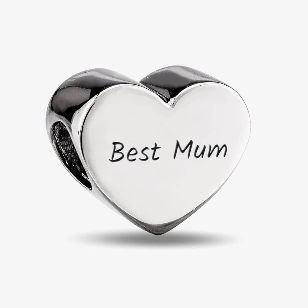 Rosa Lea love heart bead charm made from sterling silver, engraved with Best Mum adding a personal touch.