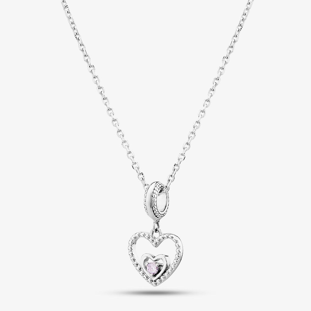 Rosa Lea openwork love heart dangle charm made from sterling silver with a smaller love heart inside and a lavender coloured cubic zirconia stone set in three claws representing June’s birthstone colour. This charm comes with a fine silver belcher chain measuring 18 inches long and weighing 2.3 grams.