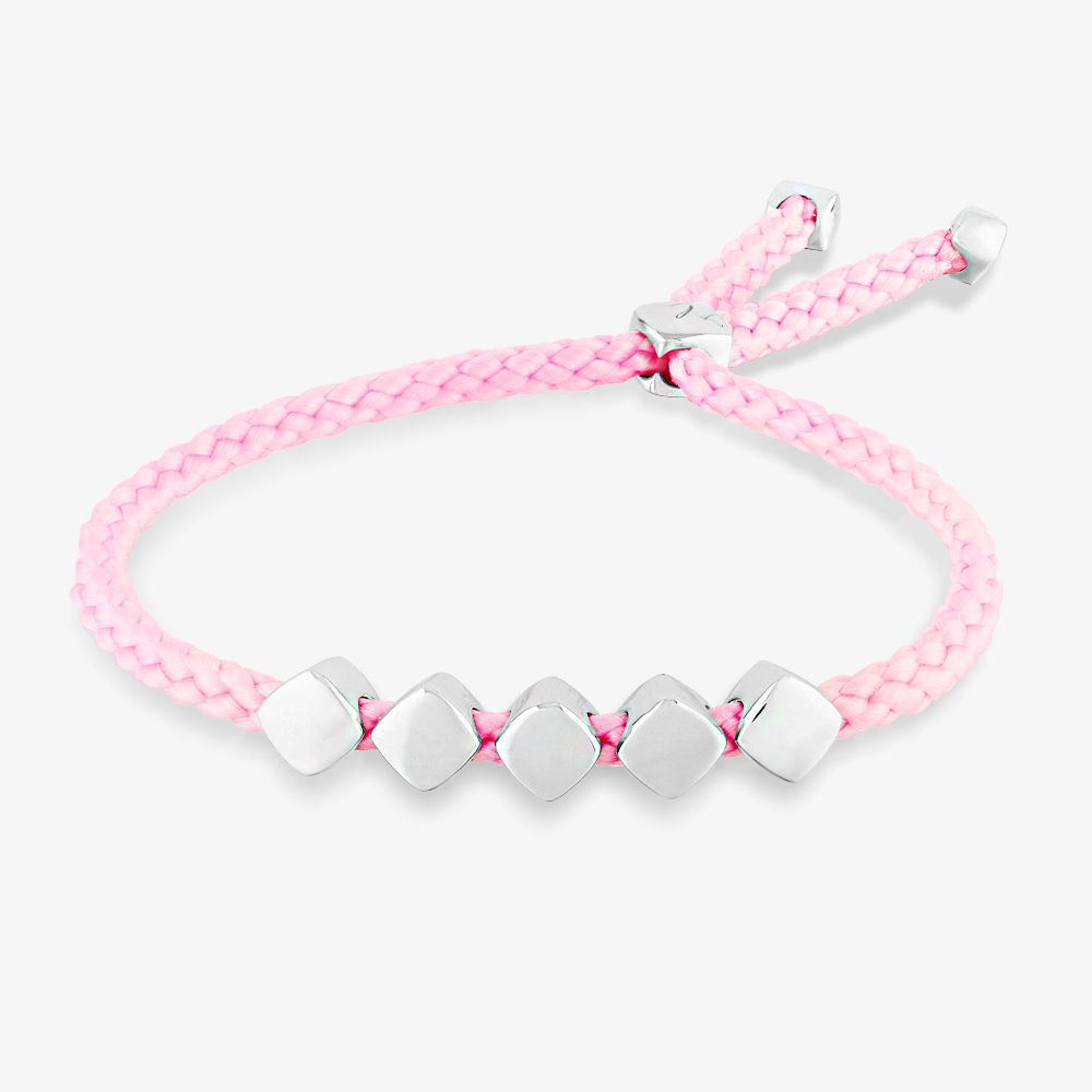 The Rosa Lea Pink Cord sterling silver Cube Toggle Bracelet AM-2THB034004 is created from pink cord and features five sterling silver cubes. It is completed with an adjustable toggle fastening.
