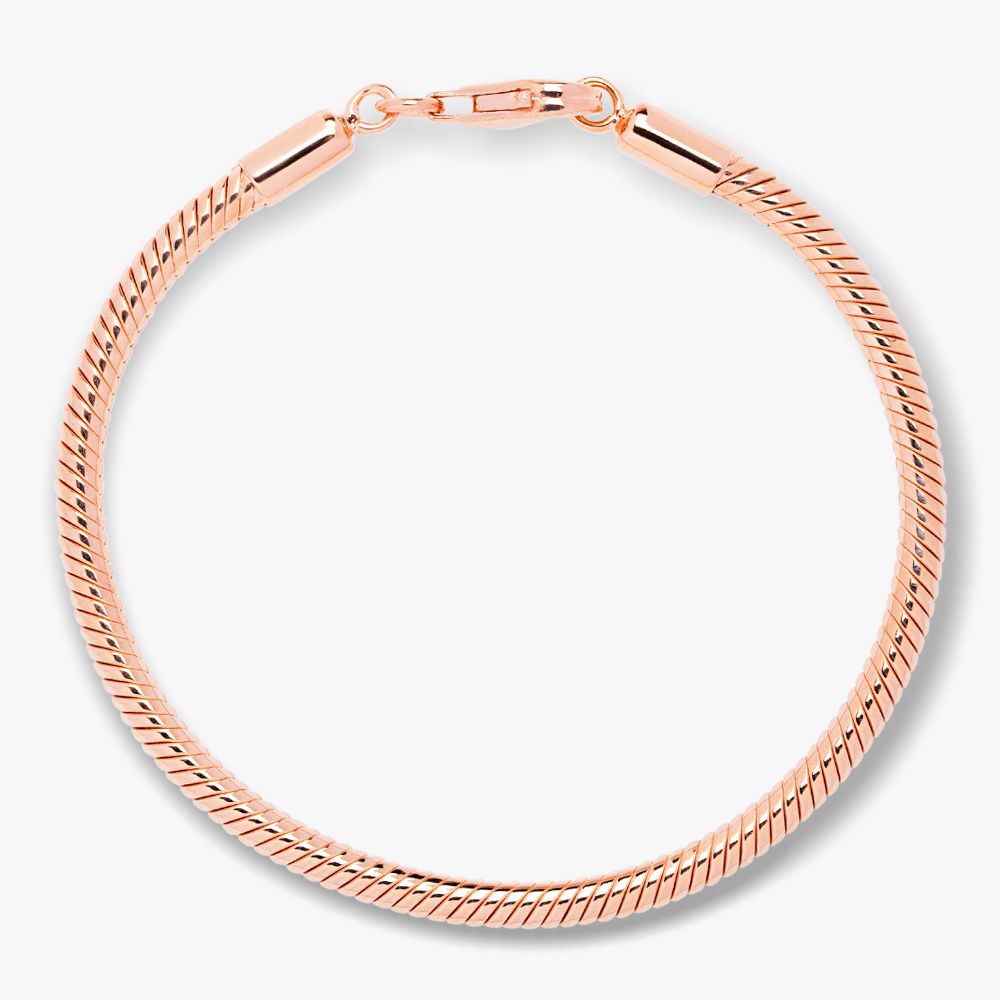 A gorgeous Rosa Lea charm bracelet made from rose gold plated sterling silver. This 4mm thick snake chain is perfect displaying your favourite charms.