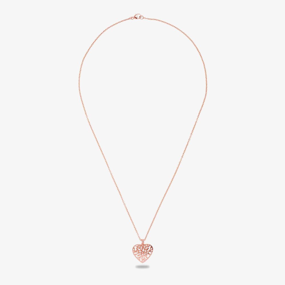 This set includes an 18" Rose Gold Plated open leaves heart pendant necklace with a lobster clasp fastening and Rose Gold Plated open leaves heart stud earrings with butterfly backs.