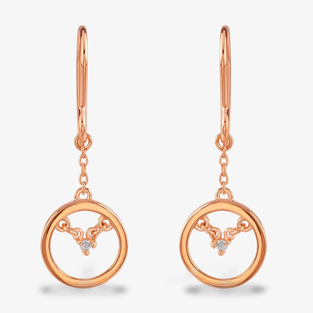 The Centrepiece design showcases a suspended diamond within a thick round bezel, held in place with a delicate trace chain. These pretty earrings fasten to your ear via the sturdy hook stem, from which the Centrepoint emblem is suspended via more trace chain to provide movement.