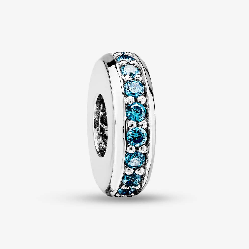 Rosa Lea spacer charm made from sterling silver and set with blue cubic zirconia stones in a line down its centre.