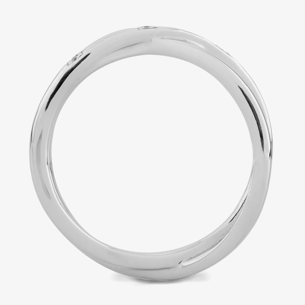 Reminiscent of a bridal set, these interlinked rings capture the hope and happiness a bride feels on her wedding day. The 'wedding band' serves as the base of the piece, whilst the larger three stone 'engagement ring' crosses over the top of the band.