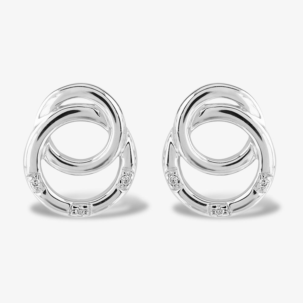 Reminiscent of a bridal set, these interlinked rings capture the hope and happiness a bride feels on her wedding day. The smaller 'wedding band' serves as the base of each earring, whilst the larger three stone 'engagement ring' sits supported by the band.