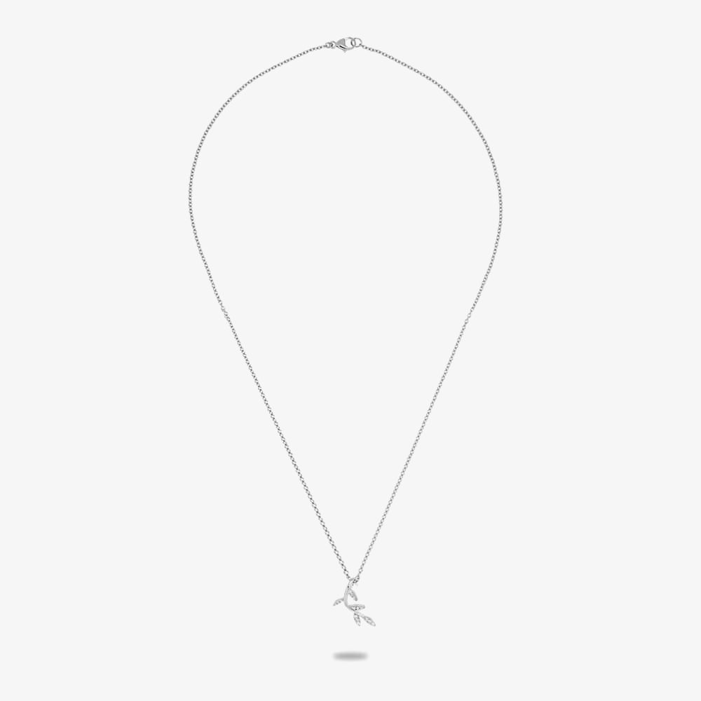 A simple & elegant sterling silver necklace crafted with a drop leaves design set with 1mm cubic zirconia stones completed with an 18 inch trace chain with lobster clasp fastening. Pair with the matching sterling silver & cubic zirconia leaves twist ring to complete the look.