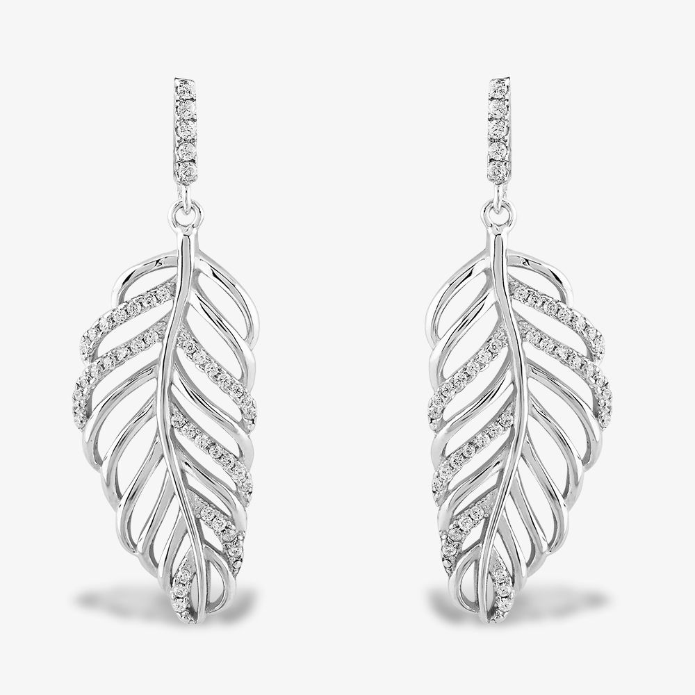 Feel as light as a feather with these delicious droppers. Each cut-out piece is delicate and subtle, asymmetrically encrusted with cubic zirconia for a shimmer to your movements.