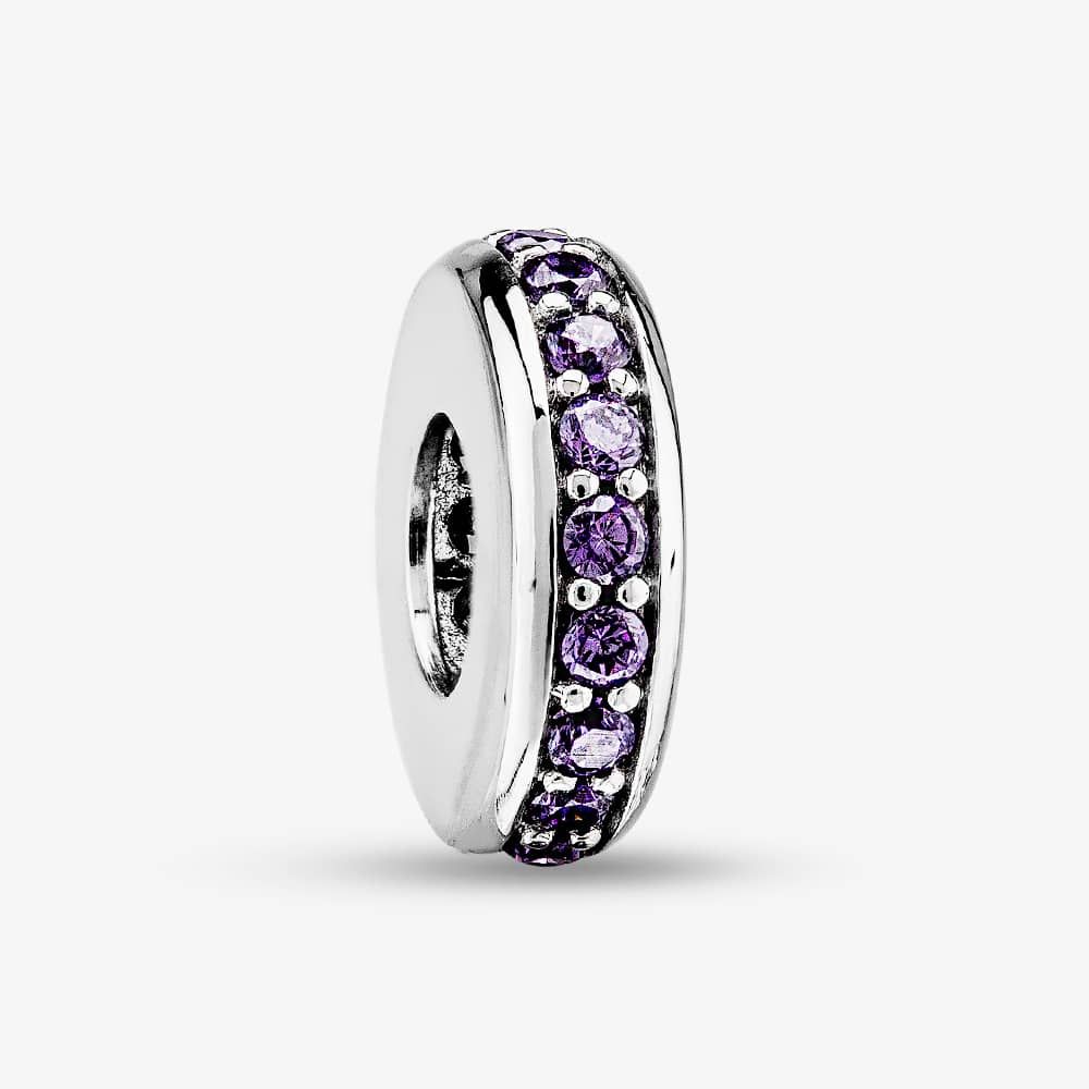 Rosa Lea spacer charm made from sterling silver and set with purple cubic zirconia stones in a line down its centre.