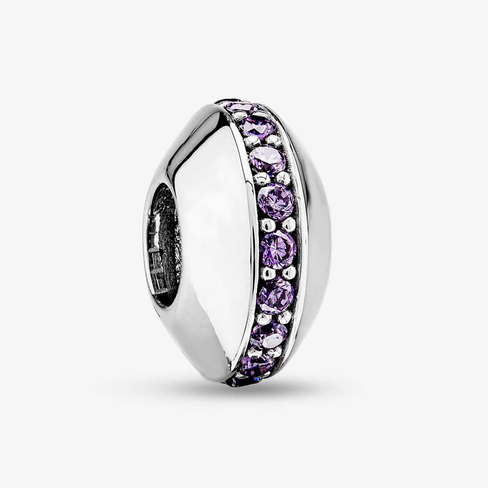 Rosa Lea dome shaped charm made from sterling silver and set with purple cubic zirconia stones in a line down its centre.