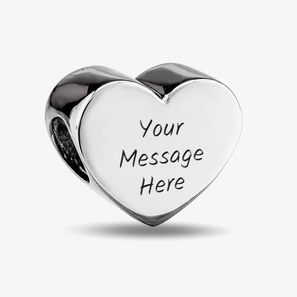Rosa Lea love heart bead charm made from sterling silver with a plain design making it ideal for engraving and adding a personal touch.